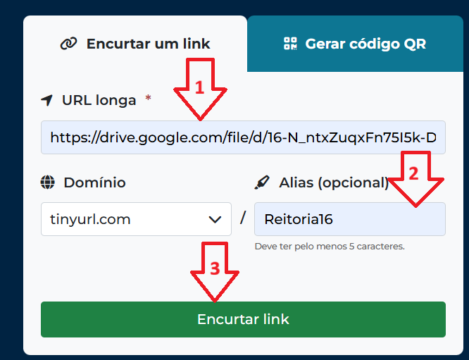 b. Use TinyURL para criar um link curto e nomeie-o, de preferência atualizando conforme a sequência de versões (por exemplo, Reitoria16).