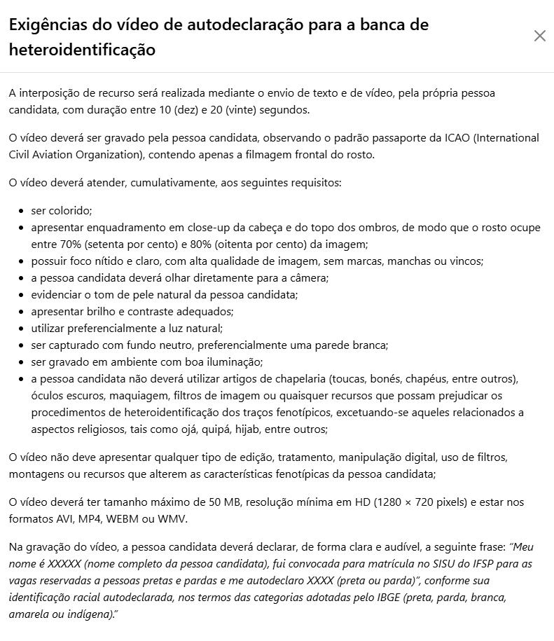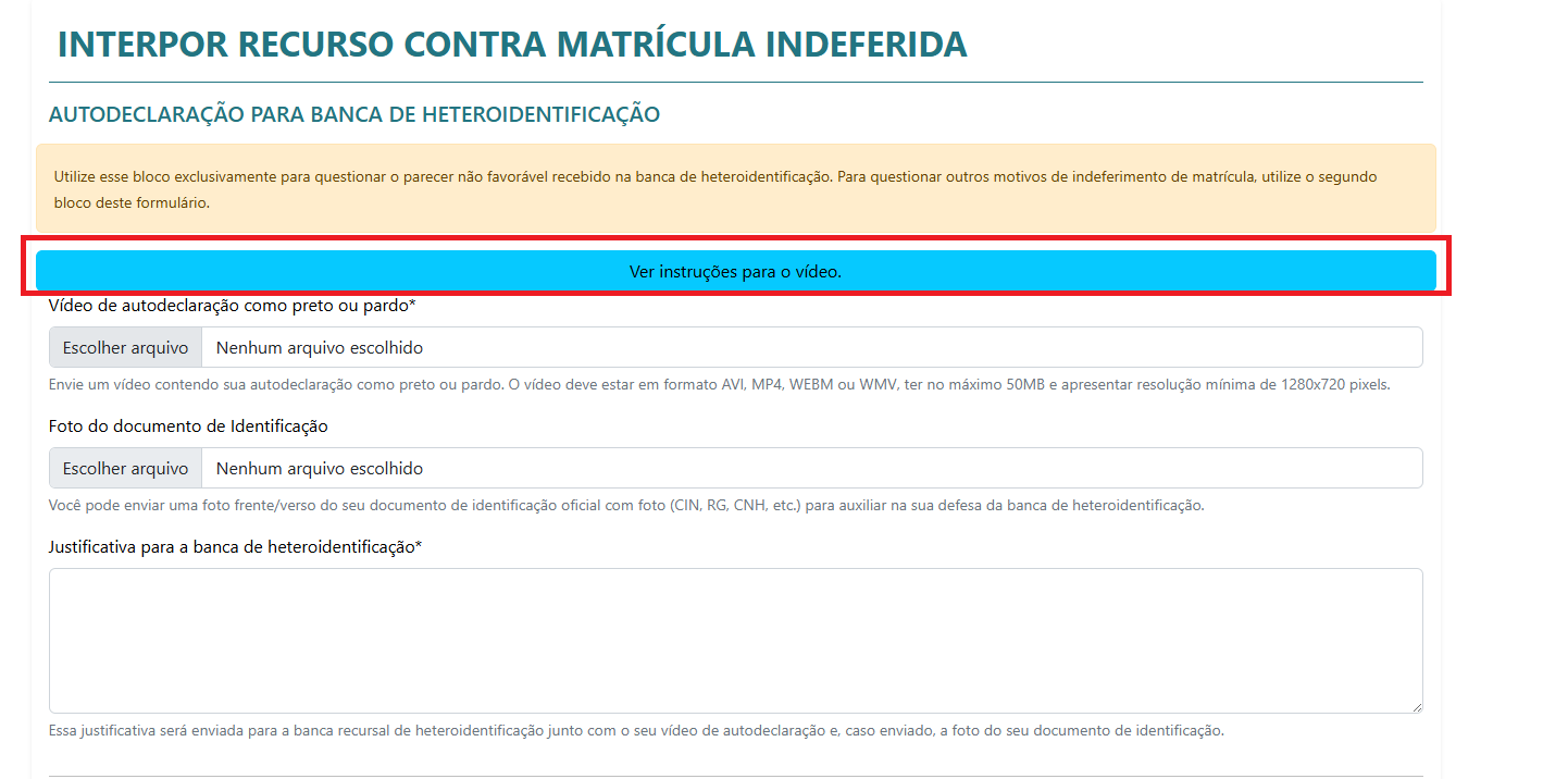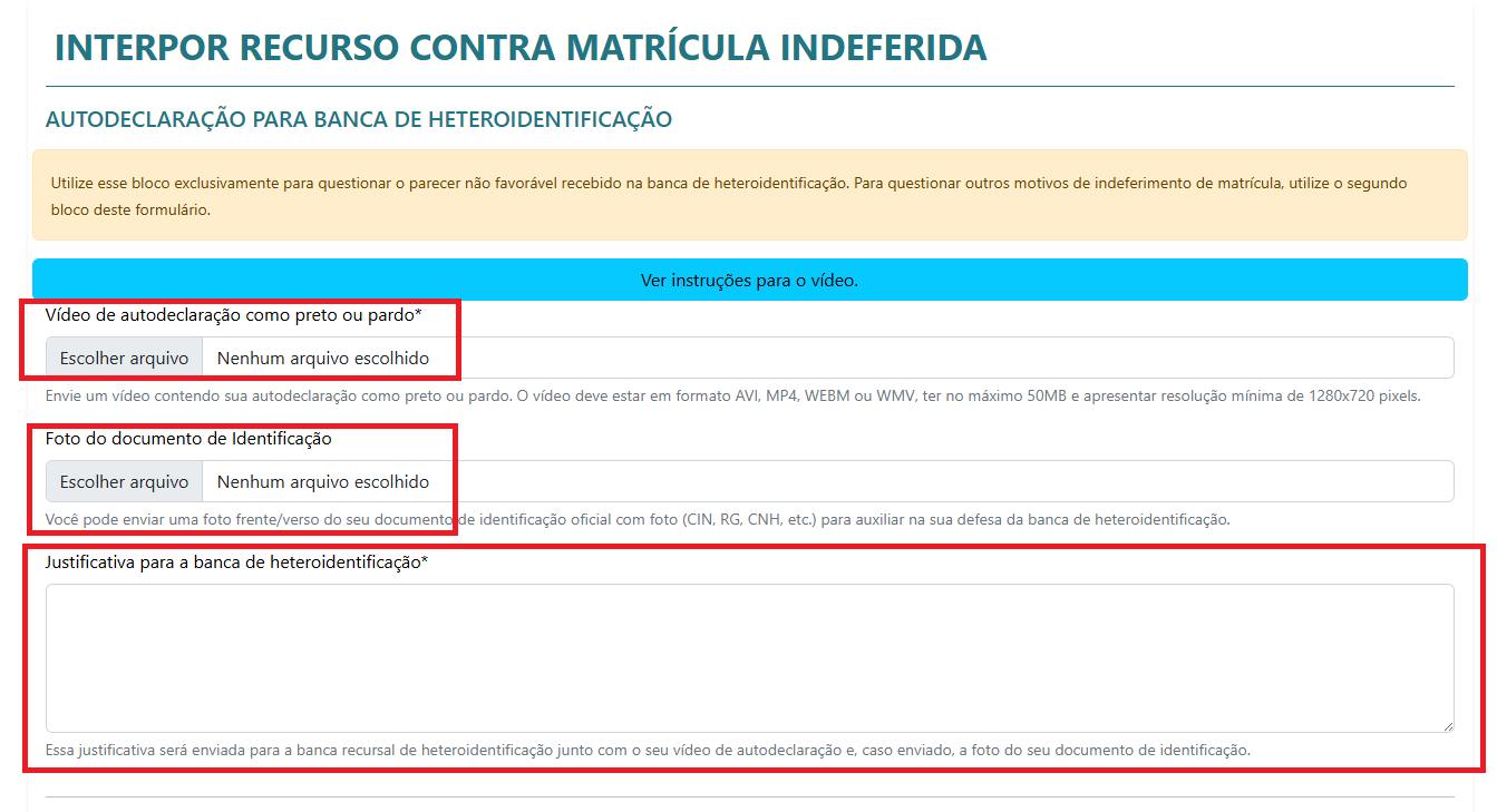 Além disso, é obrigatório registrar, no sistema, a justificativa contra o indeferimento na banca de heteroidentificação.