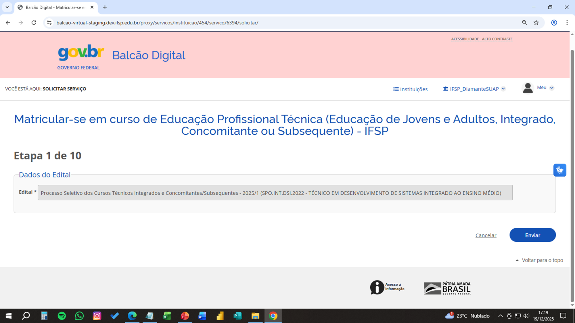 Acesse o formulário de matrícula pelo link enviado pelo IFSP ou via portal gov.br