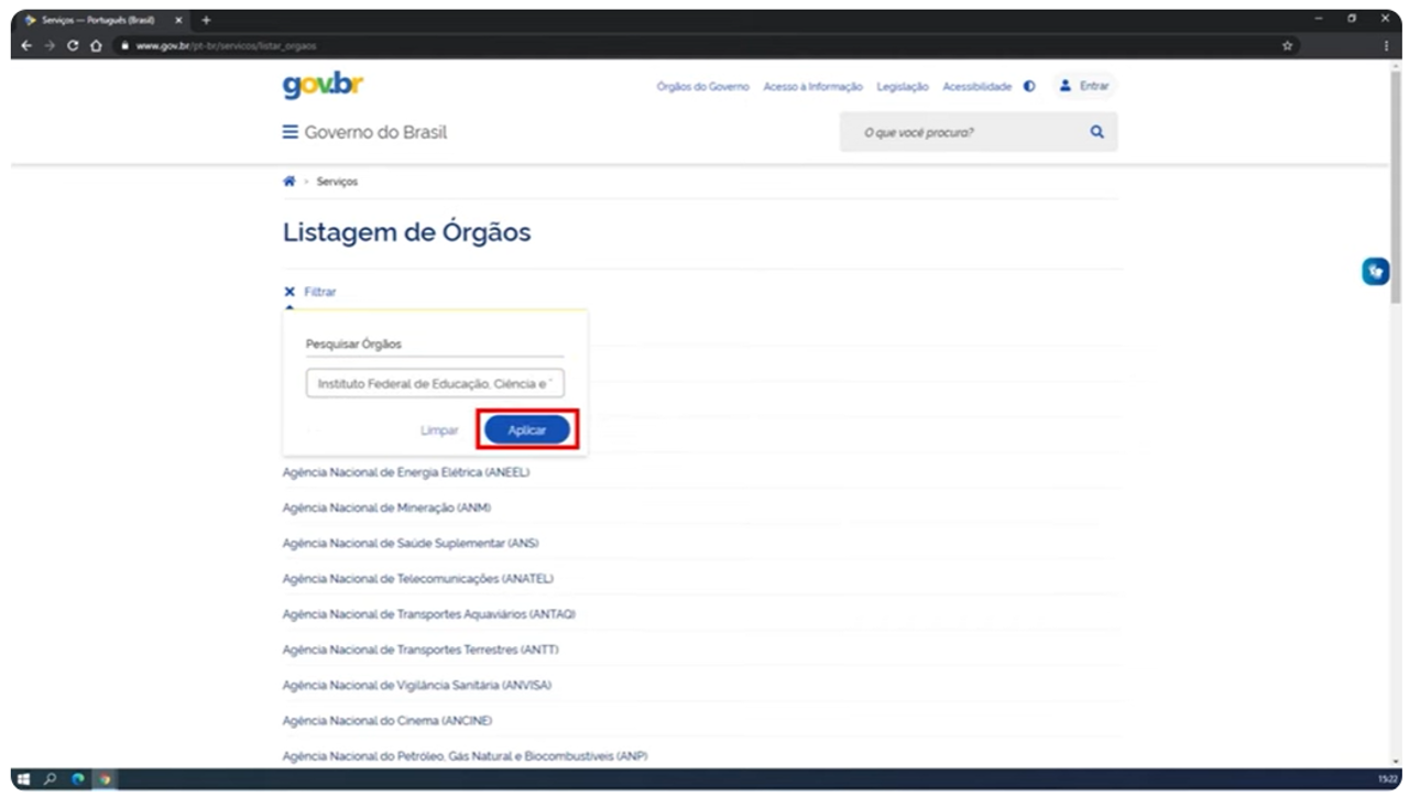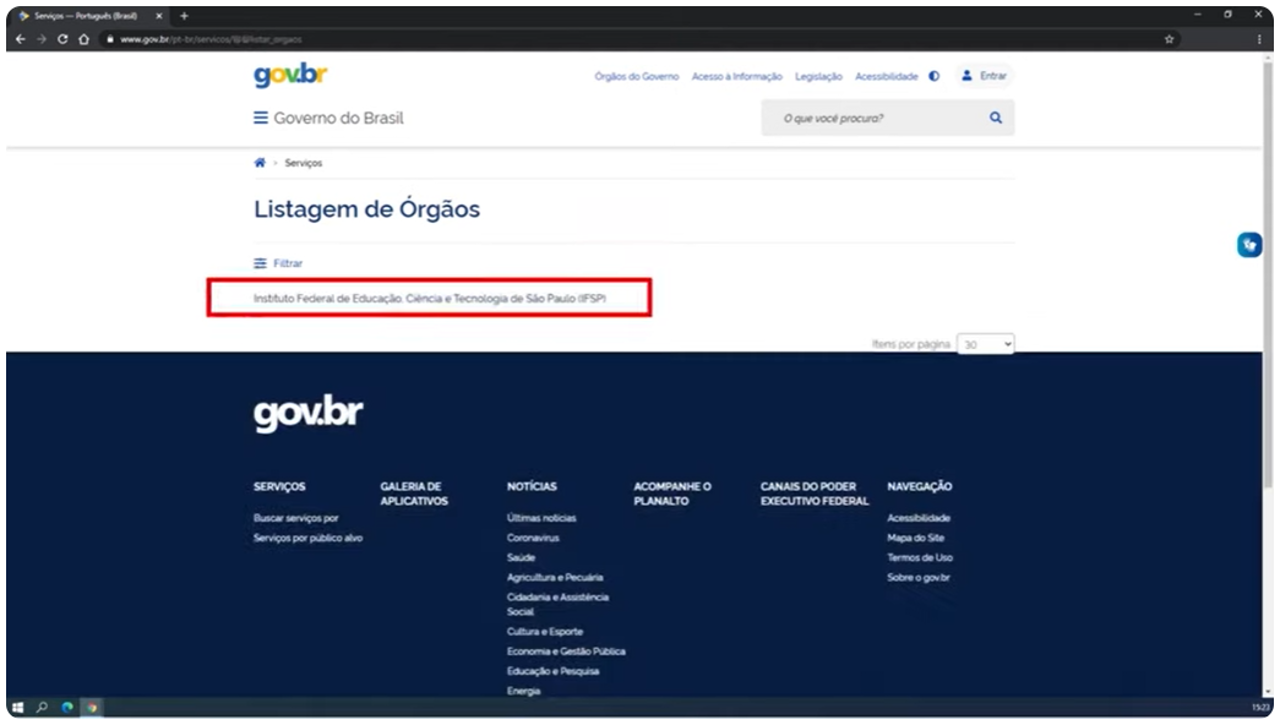 Na tela seguinte, selecione Instituto Federal de Educação, Ciência e Tecnologia de São Paulo (IFSP):