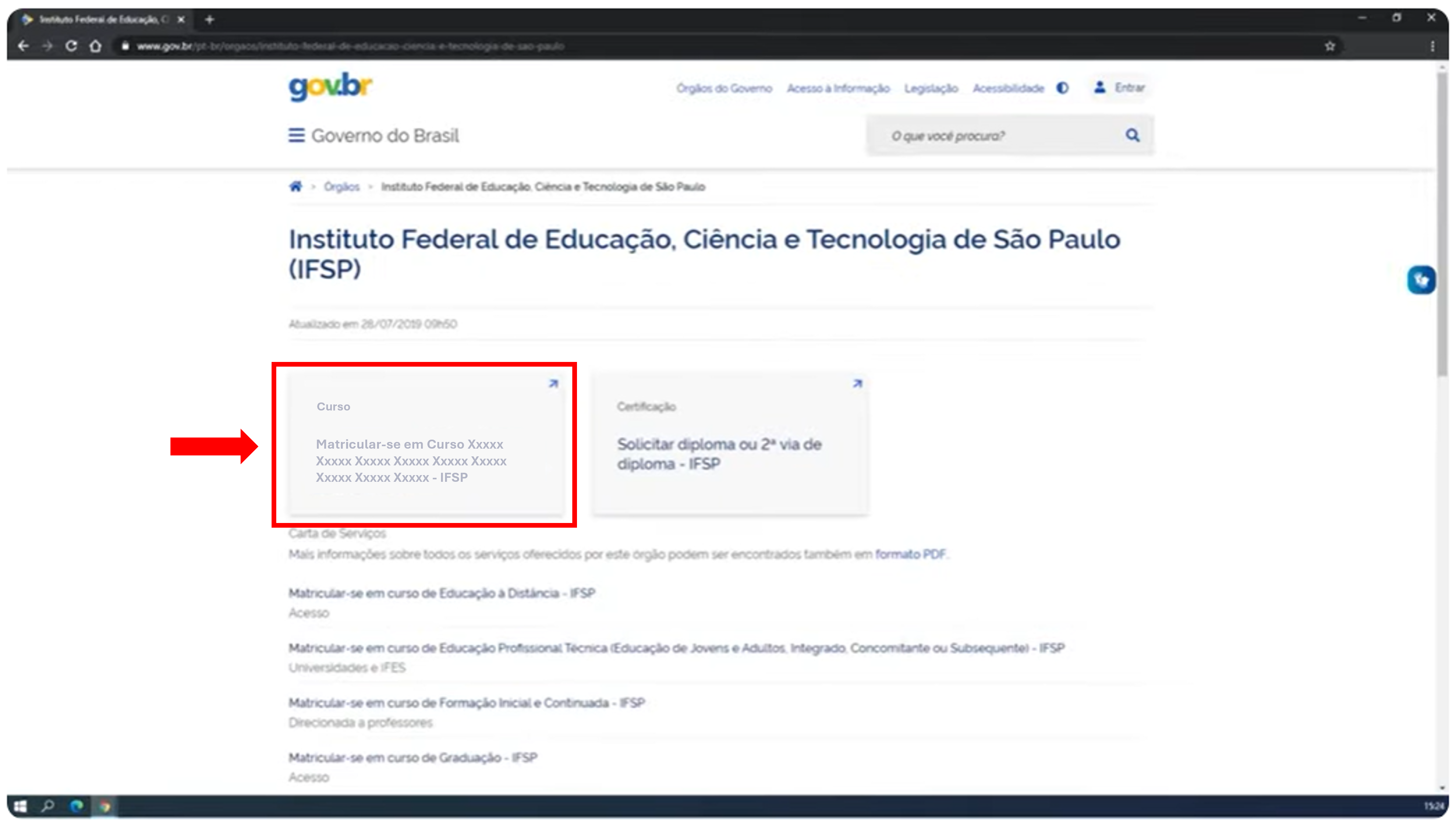 Acesse o formulário de matrícula pelo link enviado pelo IFSP ou via portal gov.br.
