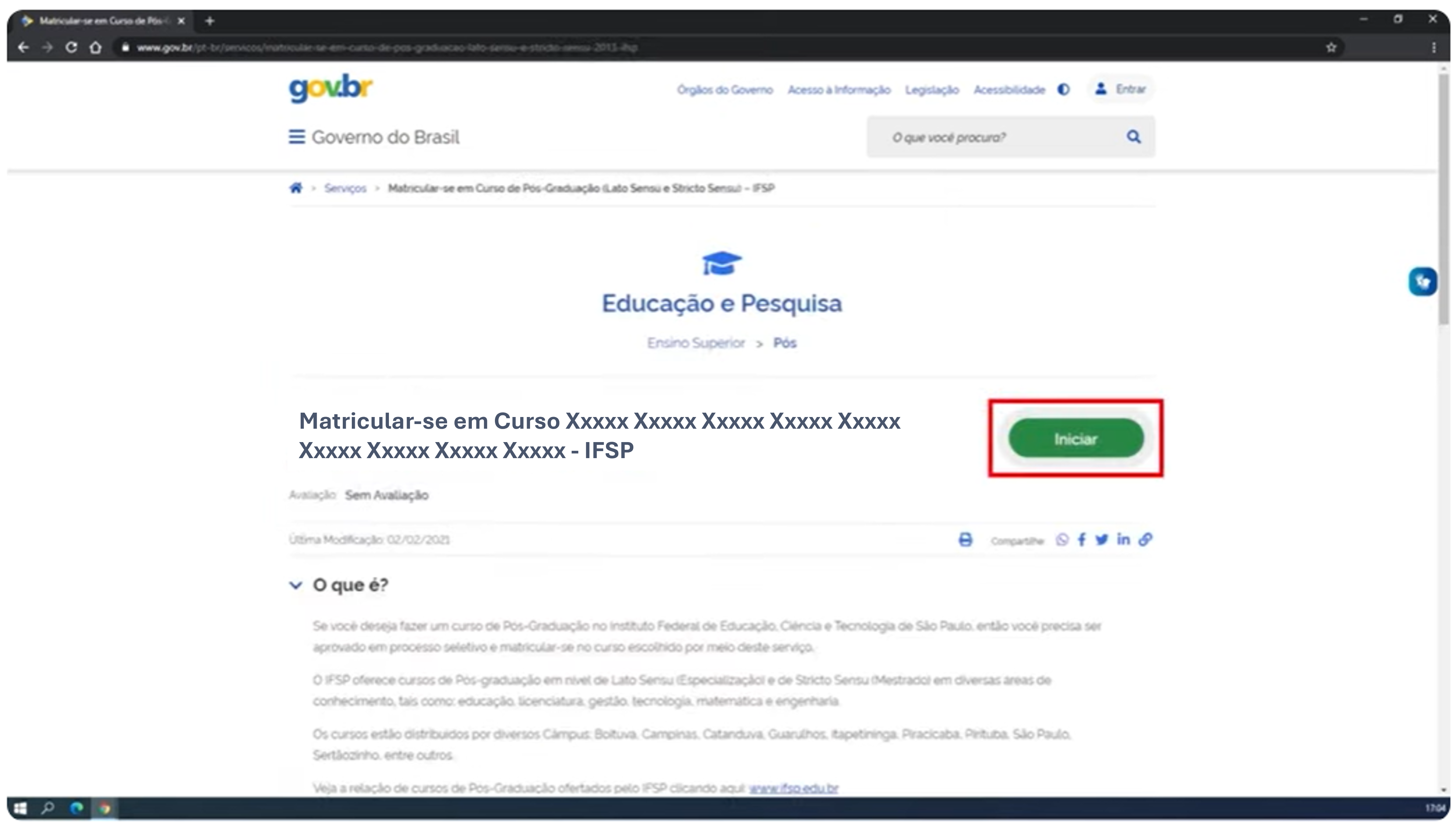 Acesse o formulário de matrícula pelo link enviado pelo IFSP ou via portal gov.br.
