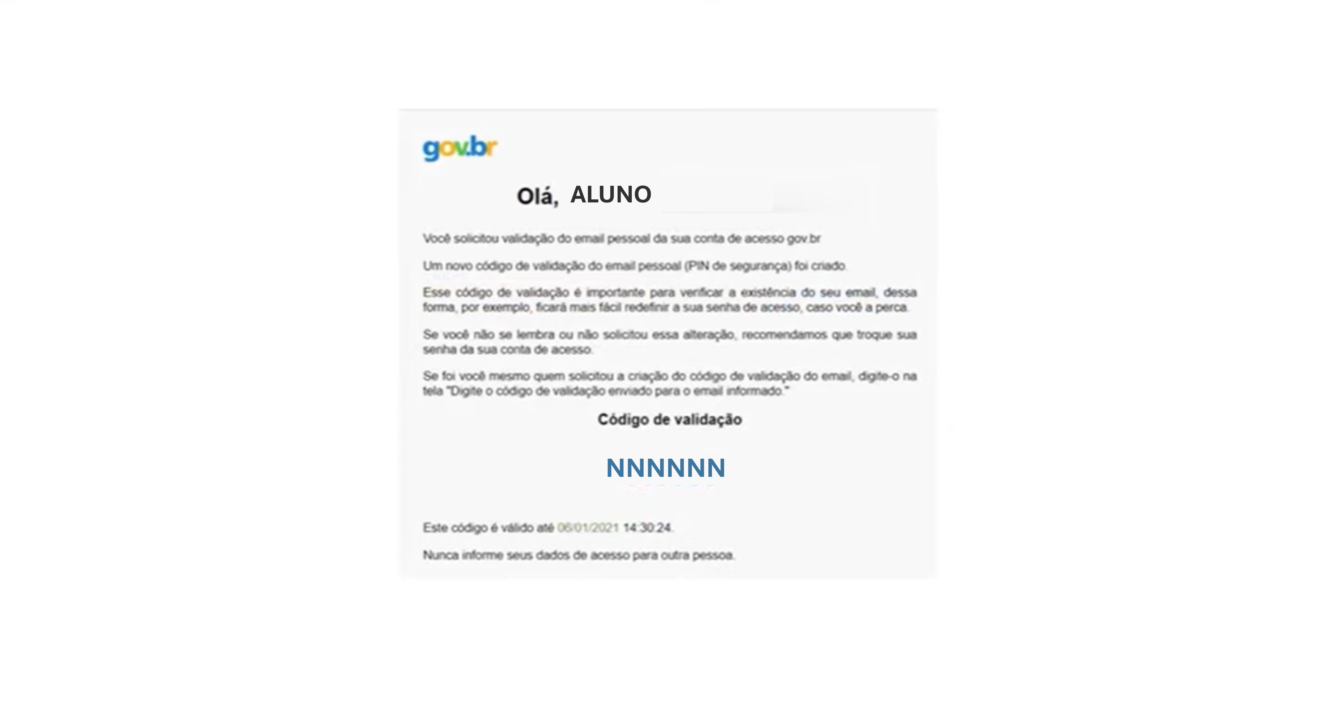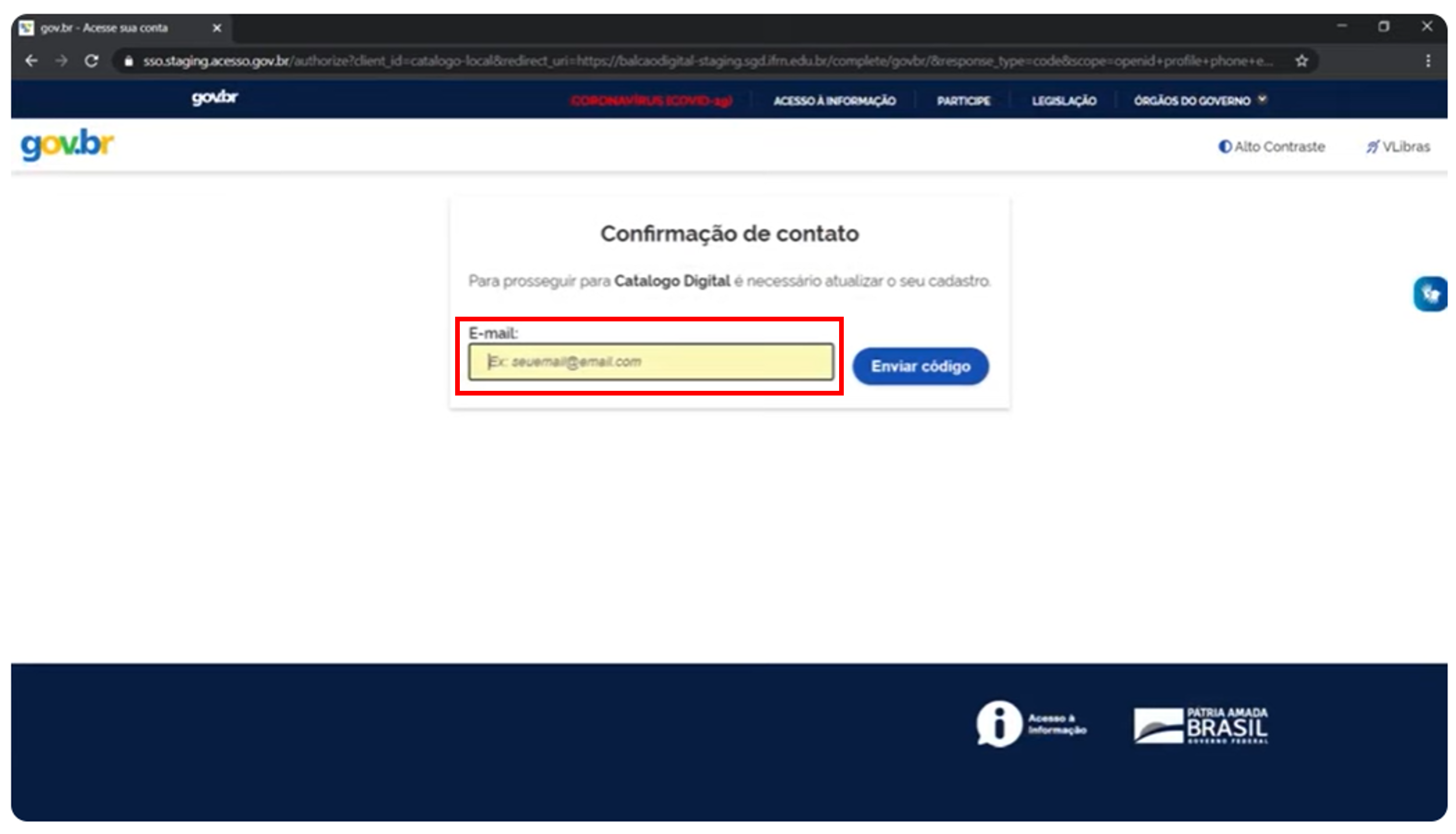 Você receberá um SMS ou uma mensagem de e-mail, com o código verificador, que deverá ser copiado para preenchimento na página GOV.BR: