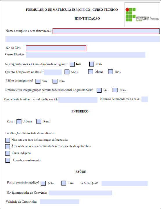 Acesse o arquivo: Clique para abrir o formulário específico do curso técnico (é um PDF editável).
