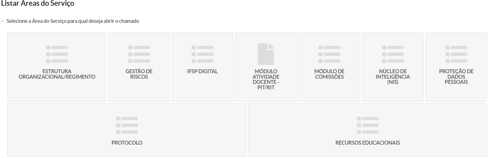 Esta funcionalidade tem por objetivo listar as áreas de atuação cadastrados no sistema. A Área de atuação possui a dimensão mais ampla do cadastro de um serviço, sendo prévia aos demais cadastros constantes do módulo de “CENTRAL DE SERVIÇOS”.