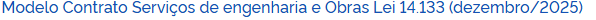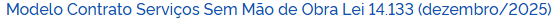 Algumas informações, como o número do contrato, número da licitação, os dados da empresa, o(s) valor(es) do(s) item(ns) devem permanecer em branco, pois só serão preenchidos após a homologação da licitação.