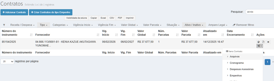 3. Insira também as informações do Contrato, Empresa Contratada e Objeto do serviço.