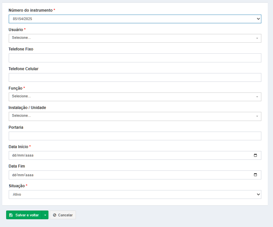 4. Selecione a função, informe o número da Portaria e a data de início;
