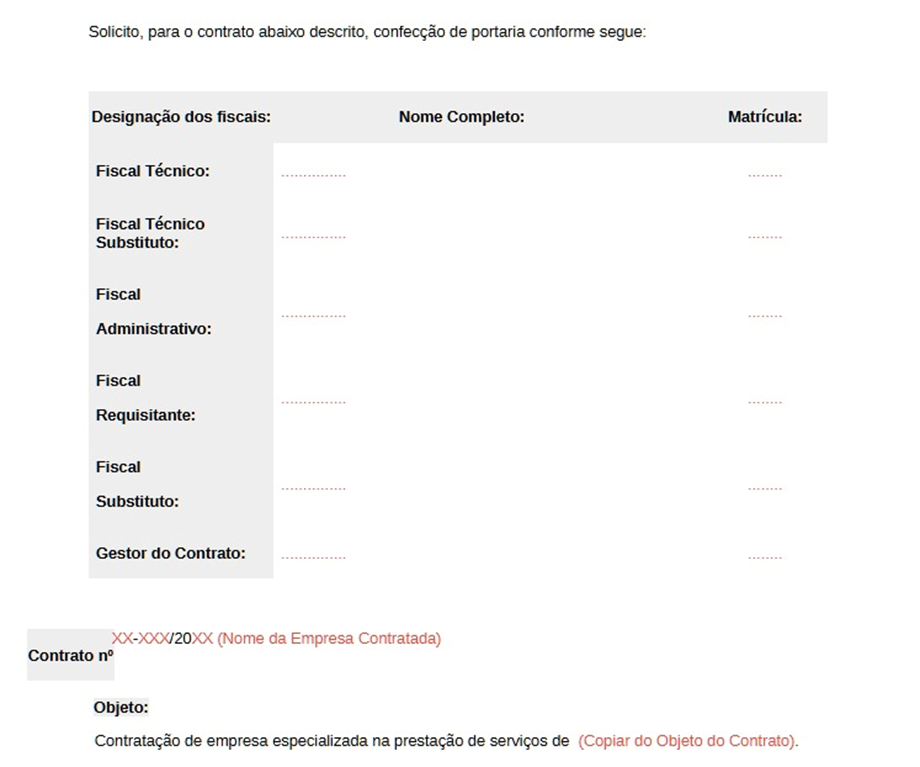 · Modelo: CONTRATO – REQUERIMENTO DE PORTARIA DE DESIGNAÇÃO DE EQUIPE DE FISCALIZAÇÃO DE CONTRATO