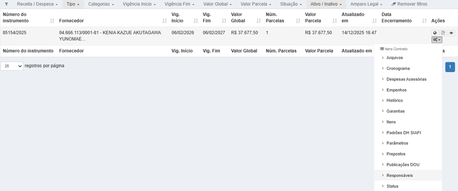 1. No menu Responsáveis, localize o fiscal a ser substituído;