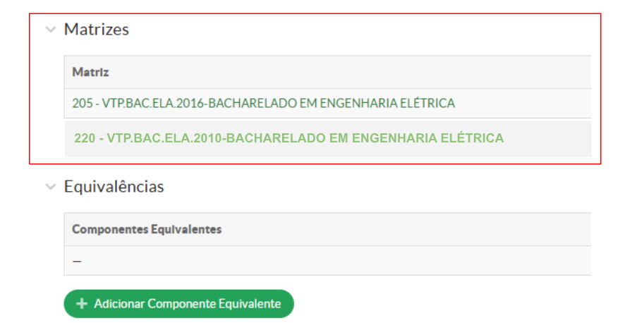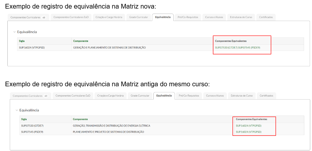Se o componente curricular pertencer ao mesmo curso e campus, este componente é chamado de Equivalente.