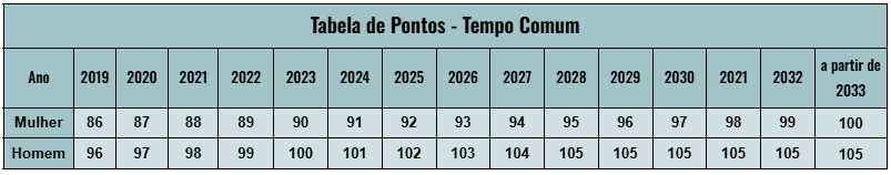 REGRA DE TRANSIÇÃO DE PONTOS - TEMPO DE SERVIÇO COMUM