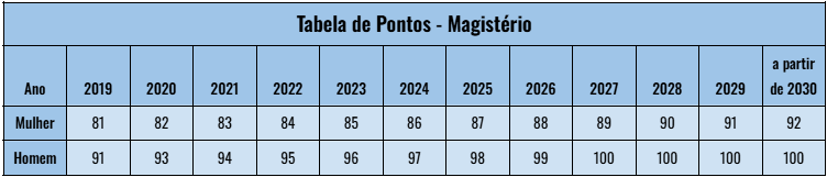 REGRA DE TRANSIÇÃO DE PONTOS - ESPECIAL DO MAGISTÉRIO