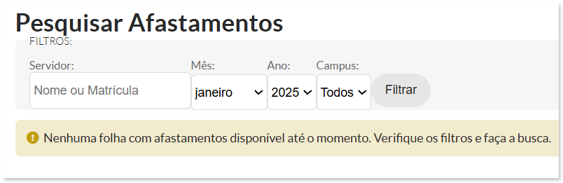 - Clique no botão “Filtrar” para visualizar os afastamentos.