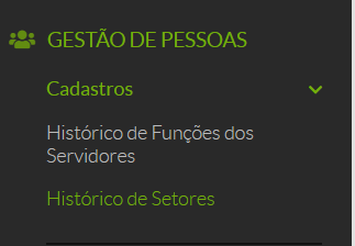 - No menu lateral, selecione: GESTÃO DE PESSOAS → Cadastro → Histórico de Setores.