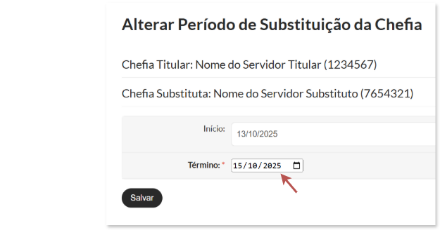 3) Utilize o ícone caso precise editar a data da finalização da substituição.