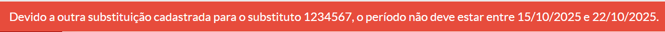 3) Digite as datas de início e término do período de substituição. A data de início da vigência não pode ser menor do que a data atual.
