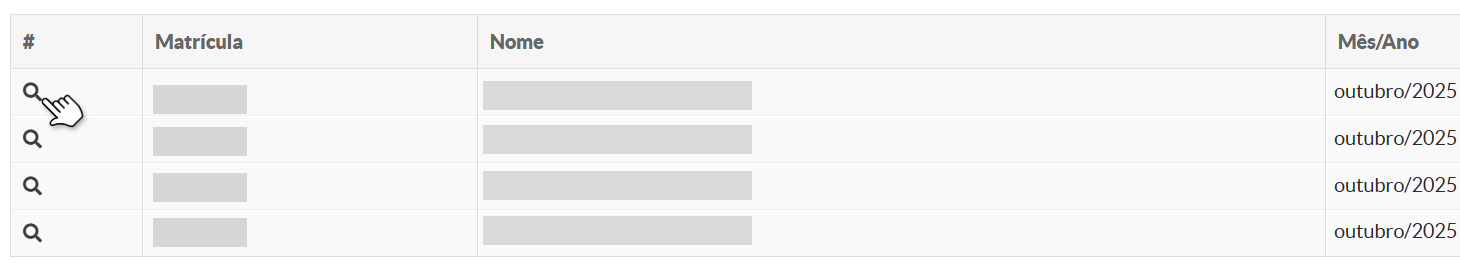 Os resultados aparecerão abaixo. Para visualizar e avaliar uma frequência, clique no ícone de lupa ao lado do registro desejado.