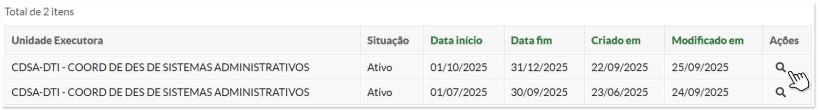 Permissões requeridas: Ser chefia ou substituto de uma Unidade Executora.