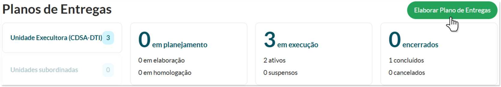Para elaborar um novo plano de entregas, a chefia deve acionar o botão disponível na listagem de Planos de Entregas.