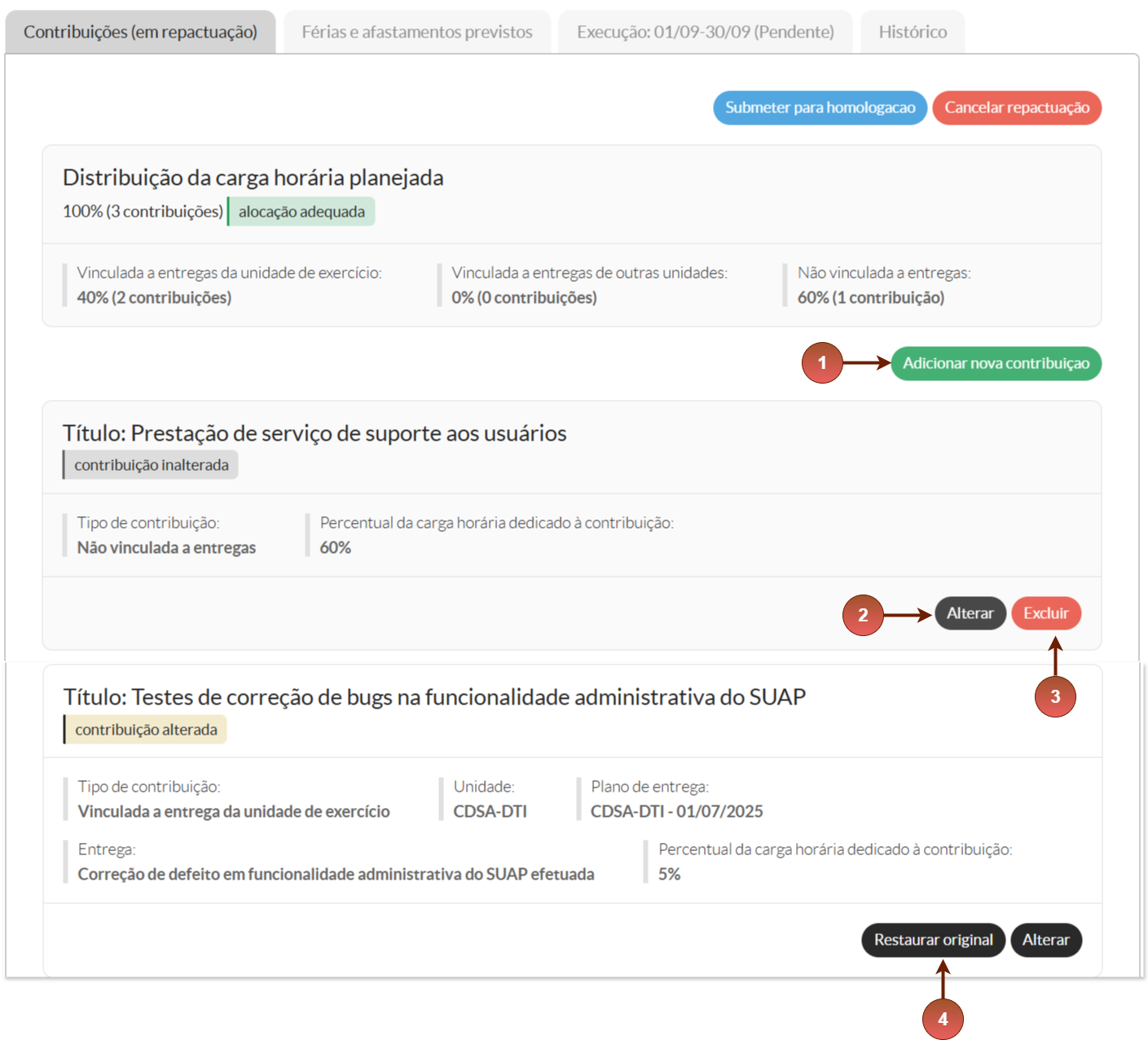 ↩️ Descartar alterações (a contribuição volta ao estado homologado).
