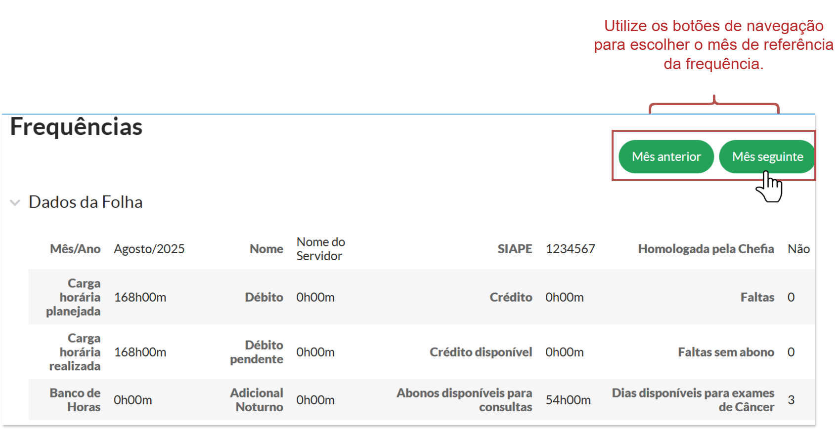 O sistema de frequência contabiliza internamente os segundos nos cálculos de tempo, embora exiba apenas horas e minutos. Isso pode ocasionar pequenas diferenças na folha de frequência exibida ou até mesmo o registro de débitos.