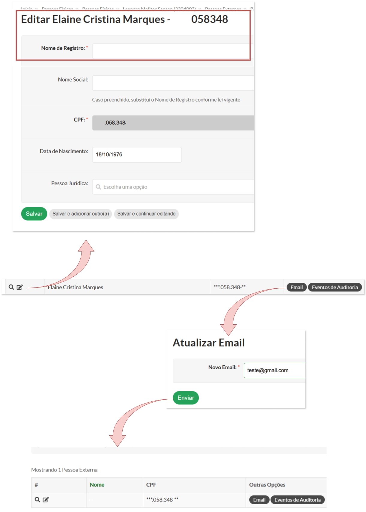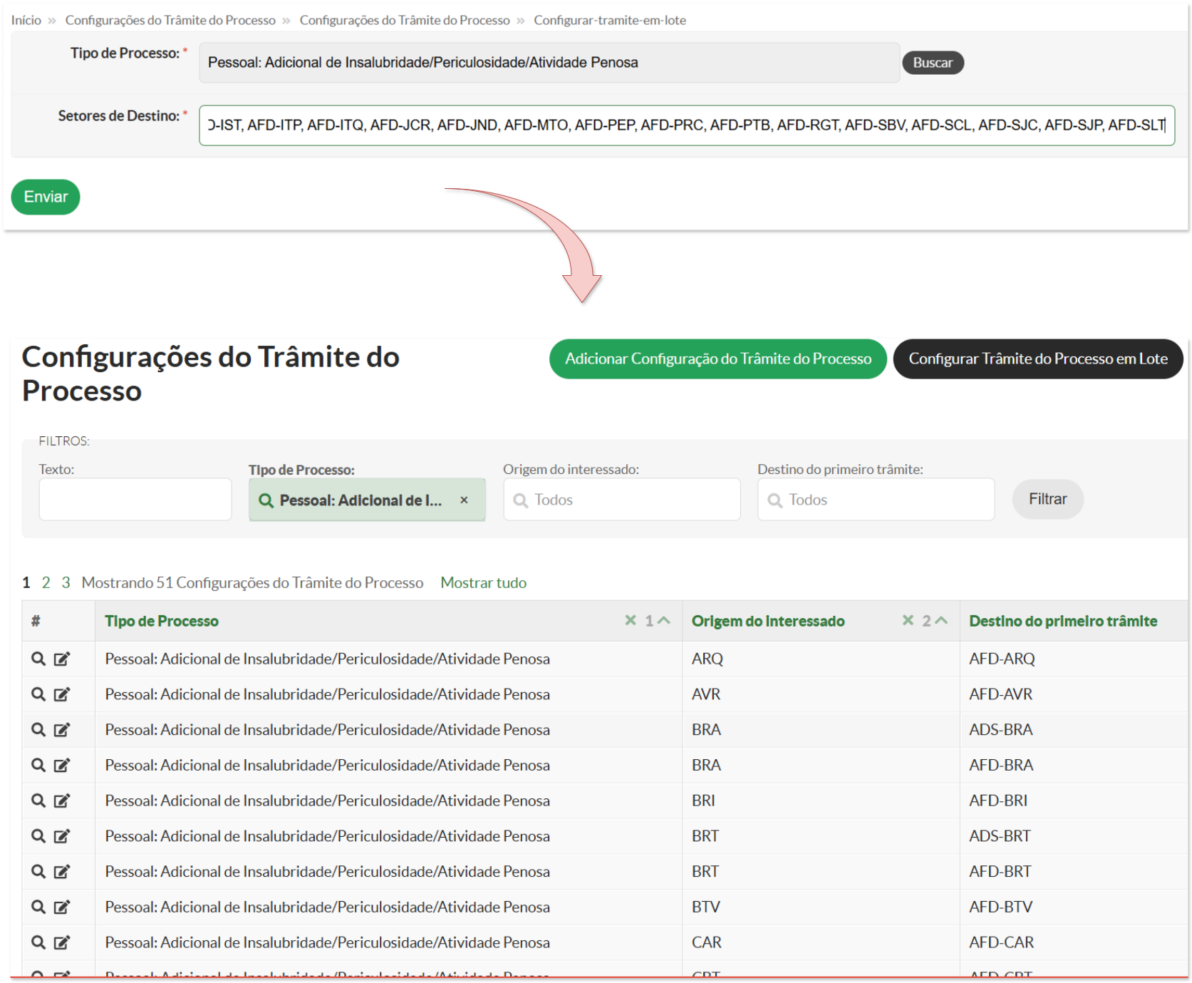 - ao Salvar, o usuário será redirecionado para a tela de visualização do processo, onde deve-se continuar o fluxo.