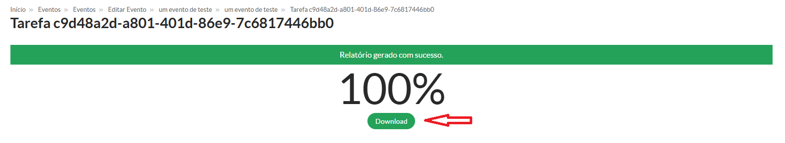 Após clicar em "Exportar para XLS" o processo de download será iniciado, assim que for concluído o usuário deverá clicar em "Download" e o documento será salvo em seu computador: