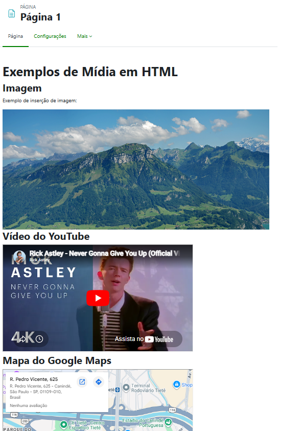 Ao salvar e voltar, sua página apresentará os elementos inseridos no código-fonte: