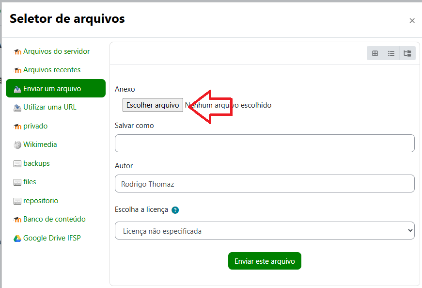 Clique em “Escolher arquivo”, navegue até o arquivo em seu computador, e depois clique em “Enviar este arquivo”.