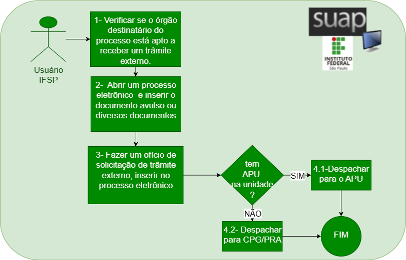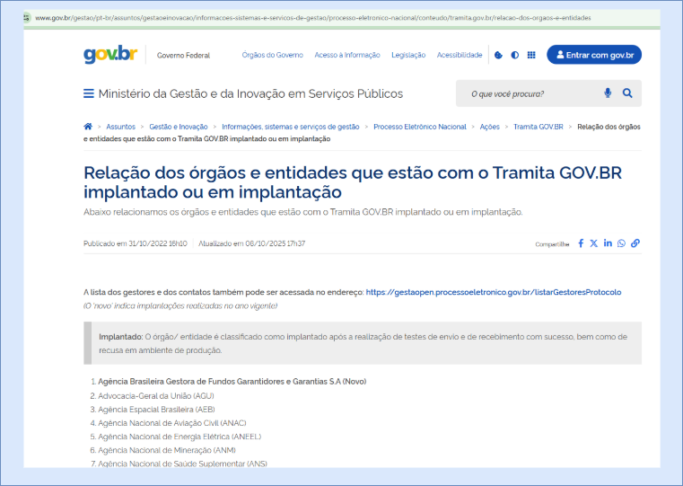 Uma vez verificado que o órgão destinatário está na lista "Implantado", será necessário formalizar via ofício a solicitação de trâmite externo.