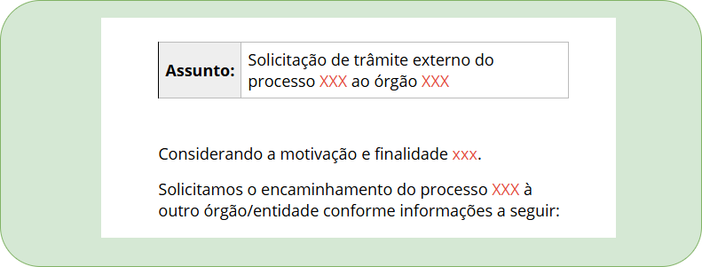 3.3 - Escreva o Assunto, a introdução contendo a motivação e a finalidade do trâmite externo, e número do processo